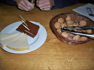 For dessert they serve a mild and creamy local cheese with apple jam and walnuts.